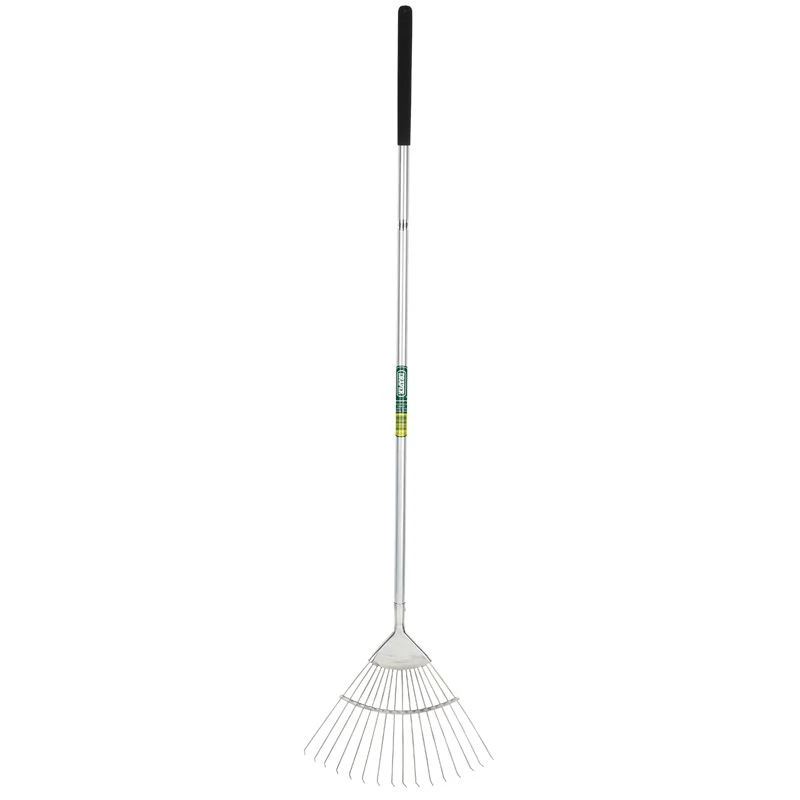 Fitted with fully hardened, tempered and polished tines. The 16 flexible round stainless steel tines are securely fixed to tubular steel handle with soft grip handle for user comfort. Sold loose.