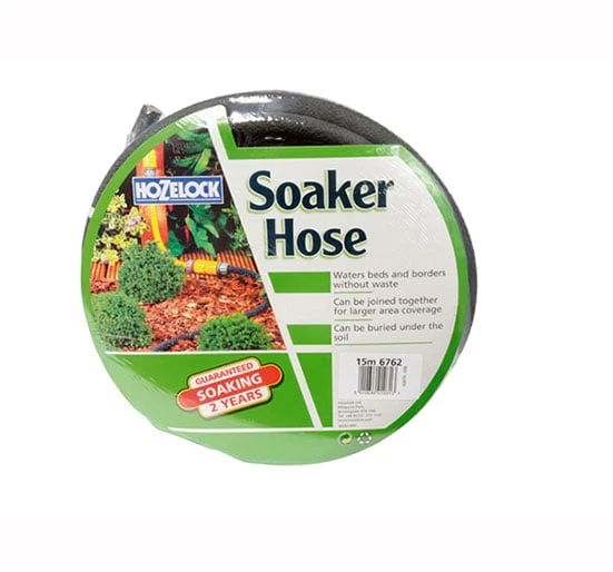 The Hozelock Soaker Hose is a porous hose, ideal for watering beds and borders. The water seeps from the hose providing gentle watering without waste. It is ideal for establishing young plants and hedges, and can be buried under the soil.